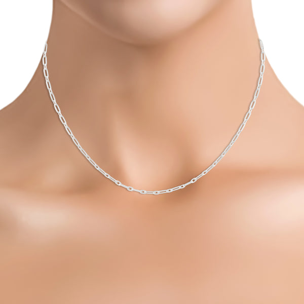 This sterling silver chain is crafted from 925 sterling silver, having a highly polished classic flat link design with an alternate big and small link pattern. It has a spring hook clasp that makes it easy to wear and style on its own or with a pendant.
