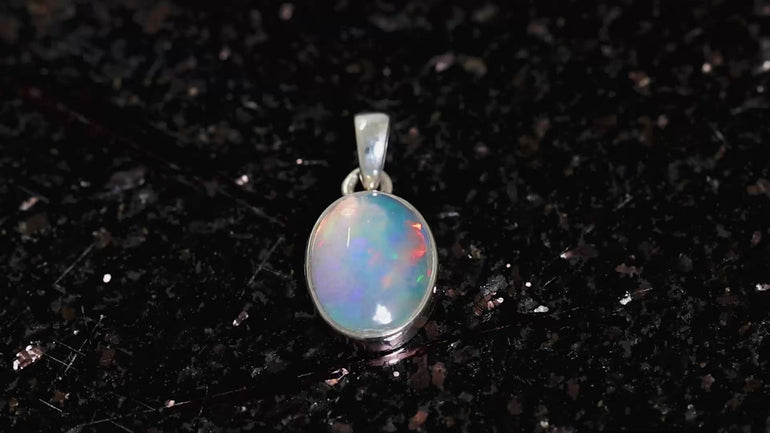 This opulent opal pendant features an oval opal cabochon set delicately in sterling silver bezel setting, showcasing a stunning play of rainbow colours, making this beautiful pendant a must have addition to your jewellery collection. This pendant comes with an 18-inch sterling silver chain that sits perfectly on your neck, elevating your look.